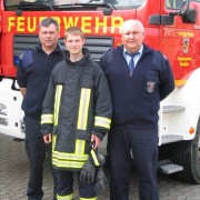 Wehrführer Liesenfeld konnte die neuen Feuerwehrmänner anlässlich der Übung am 06.05.2012 mit der persönlichen Schutzausrüstung ausrüsten.