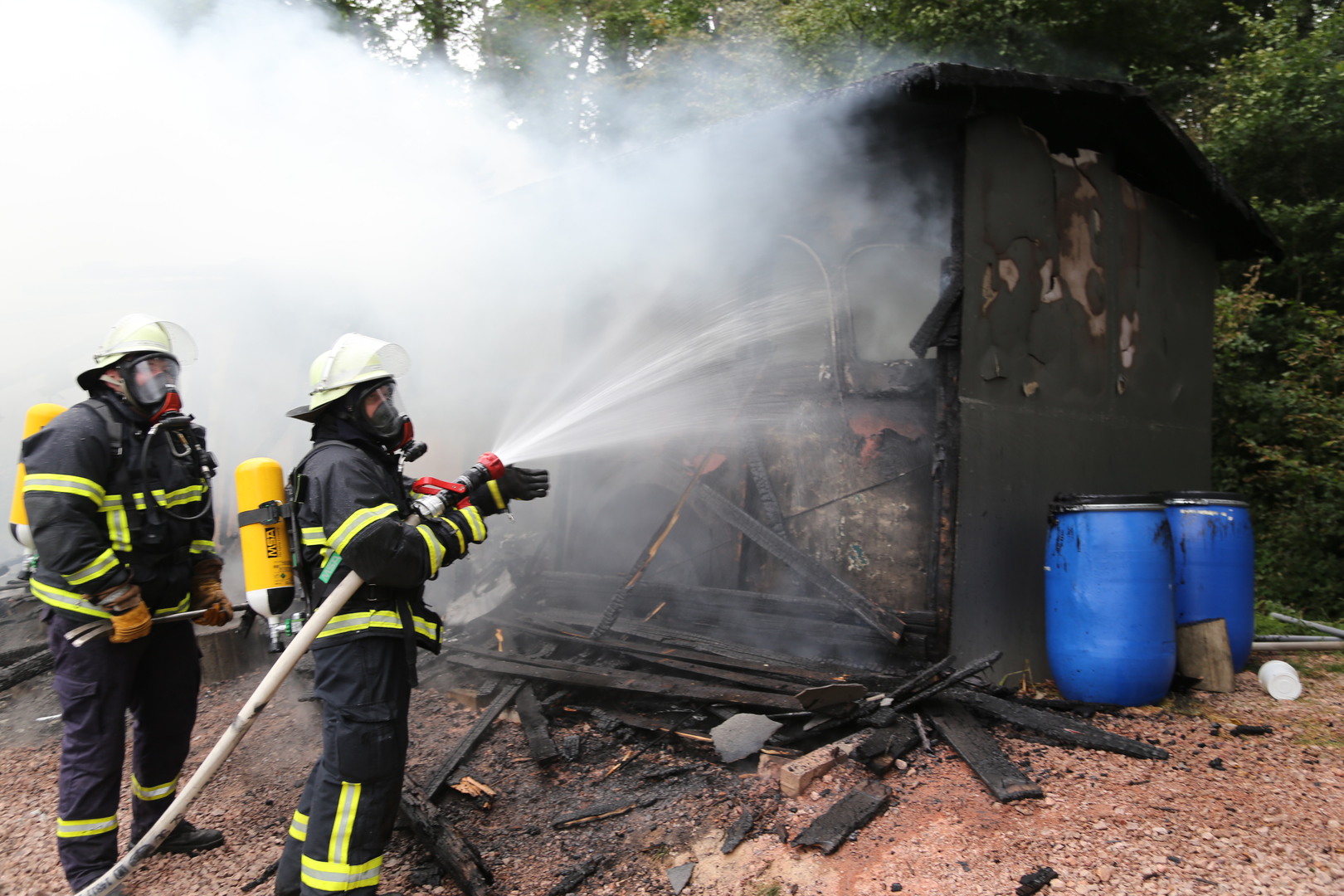 Brand Fischerhütte im Wildschutzpark Rheinböllen am 08.08.2015